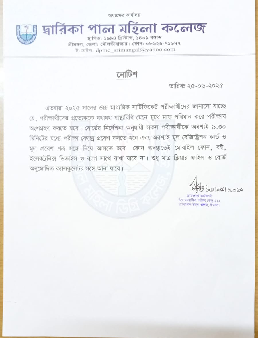| 5 | 2025-06-25 | ২০২৫ সালের এইচএসসি পরীক্ষায় অংশগ্রহণকারী শিক্ষার্থীদের জন্য নোটিশ | View Download |