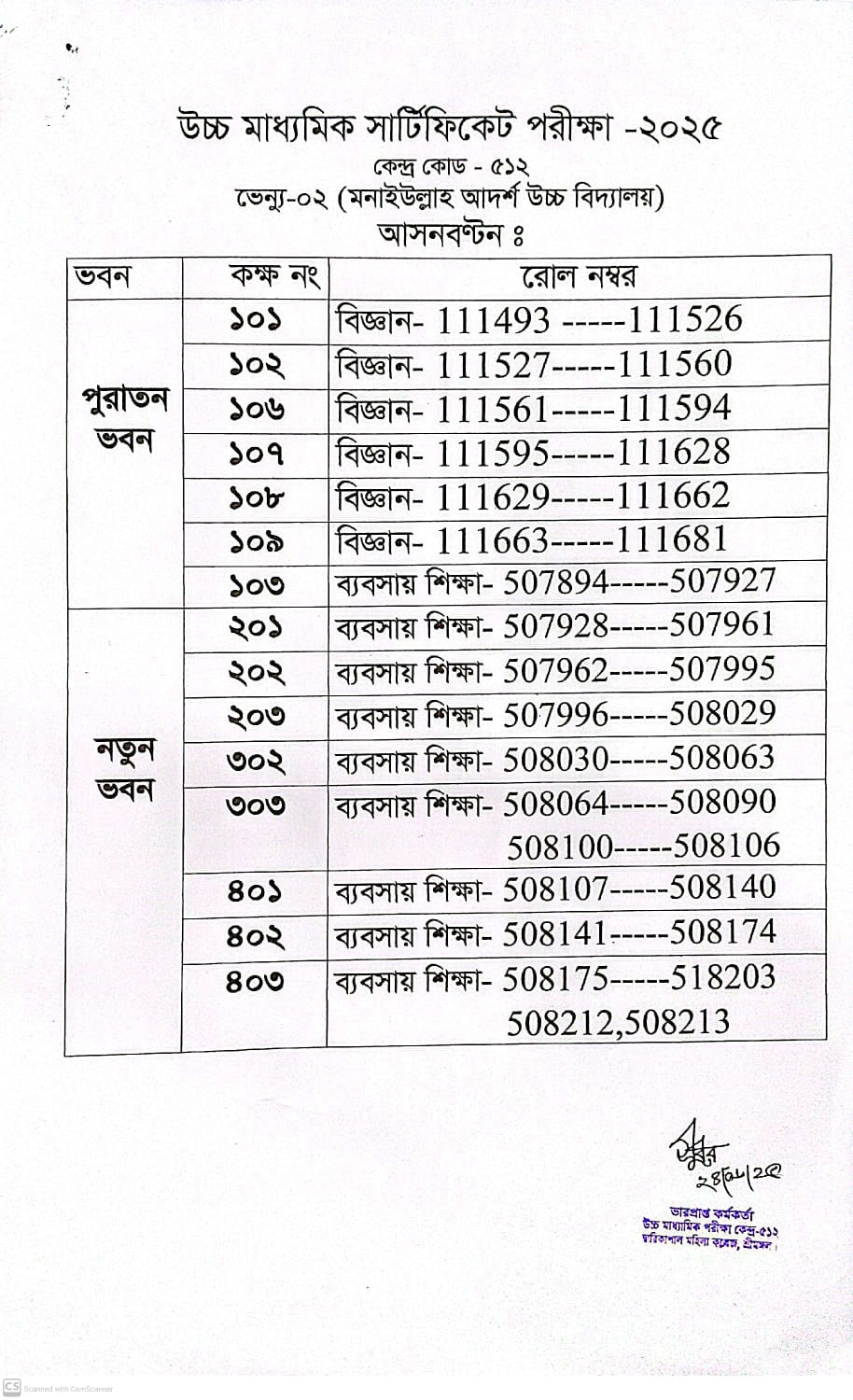 | 6 | 2025-06-24 | ২০২৫ সালের এইচএসসি পরীক্ষায় অংশগ্রহণকারী শিক্ষার্থীদের আসন বিন্যাস ভেন্যু-০২ | View Download |