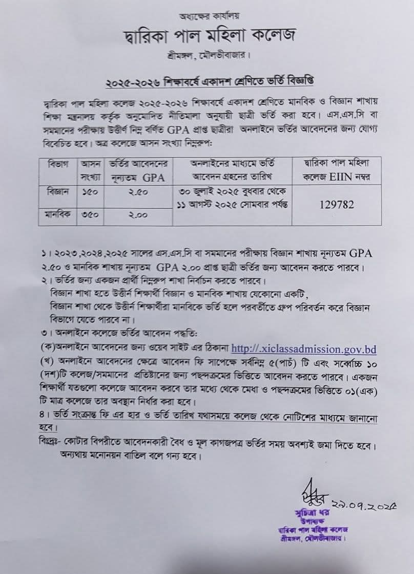 | 3 | 2025-07-29 | ২০২৫-২০২৬ শিক্ষাবর্ষে একাদশ শ্রেণিতে ভর্তি বিজ্ঞপ্তি | View Download |